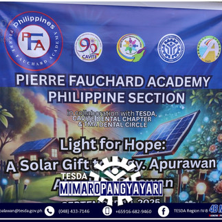 The formal turnover ceremony was led by PFA Chairperson Dr. Tagumpay Poblete Tapawan. She was joined by key partners from the dental community, including Dr. Abel Depano, President of the Cavite Dental Chapter, and Dr. Rachelle May Joson, Counselor of the Tagaytay-Mendez-Amadeo Circle. Also present during the event was the TESDA Palawan Provincial Director Gerardo A. Mercado, who coordinated the project and other personnel and trainees of PTC Palawan that installed the solar post lamp. Their collaborative effort highlights the spirit of bayanihan and the dental profession's commitment to social responsibility beyond clinical practice.